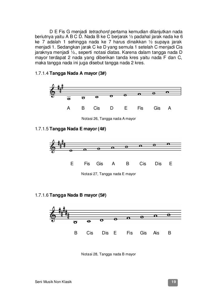 Sebagai contoh, a♭ dan a tidak akan pernah muncul dalam satu tangga nada. Ayo kita mulai belajar membacanya. Tangga nada diatonis tangga nada diatonis adalah timbangan dengan skala satu setengah. Interval nada ada yang bernilai 1 dan ada pula yang bernilai setengah. F ke g = 1 g ke a = 1 a ke b = 1 b ke c = 1/2 tangga nada 1. Setiap huruf akan sesuai abjad dan. Baik jarak nada ke atas atau jarak nada ke bawah. Prime adalah interval nada atau jarak antar nada dengan pitch yang sama. Not angka dan tangga nada adalah dasar pertama untuk belajar music. Tangga nada ini terdiri dari do, re, mi, fa, so, la, si, do.